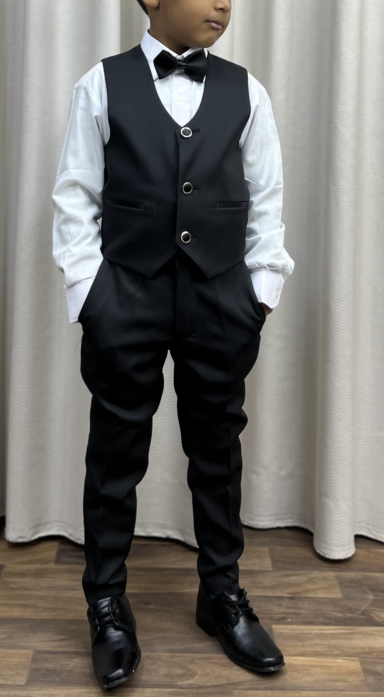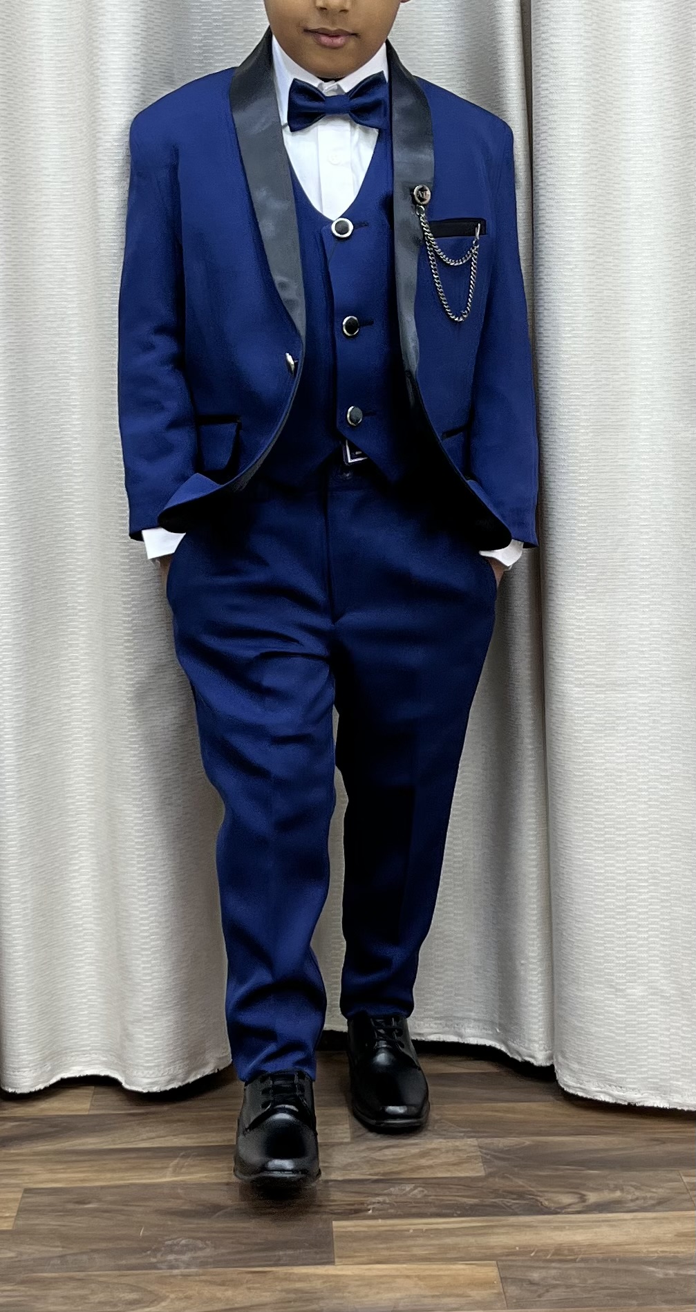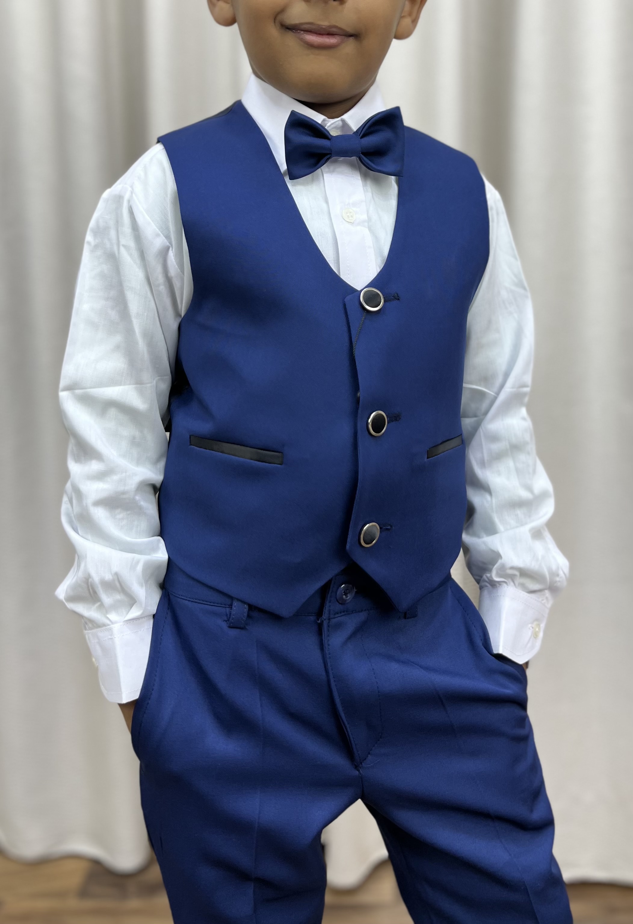 5 pièces Veste - Pantalon - Gillet - Chemise - Papillant De 2 ans à 16 ans Trois couleurs Bleu - Bleu roi - Noir
